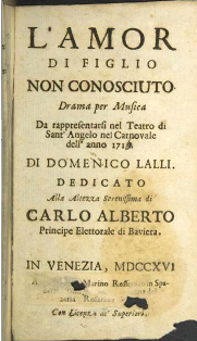 Nicht weniger als 19 Besuche theatralischer Aufführungen sind anhand der Quellen für den einmonatigen Aufenthalt Karl Albrechts in der Lagunenstadt datierbar. Er hörte Opern von Antonio Lotti, Tomaso Albinoni, Carlo Francesco Pollarolo und Antonio Vivaldi. „L’amor di figlio non conosciuto“, eine Oper von Tomaso Albinoni, zu der Domenico Lalli den Text beisteuerte, wurde dem bayerischen Prinzen sogar explizit gewidmet und im Teatro Sant’Angelo aufgeführt. Leider sind zu dieser Oper keine Musikalien erhalten, lediglich aus dem Libretto wird die Widmung ersichtlich.